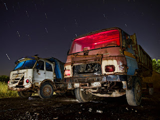 Fotografía tomada en el cementerio de grúas, 35 imágenes de 30", montado con startrails y mejorado con topaz labs.